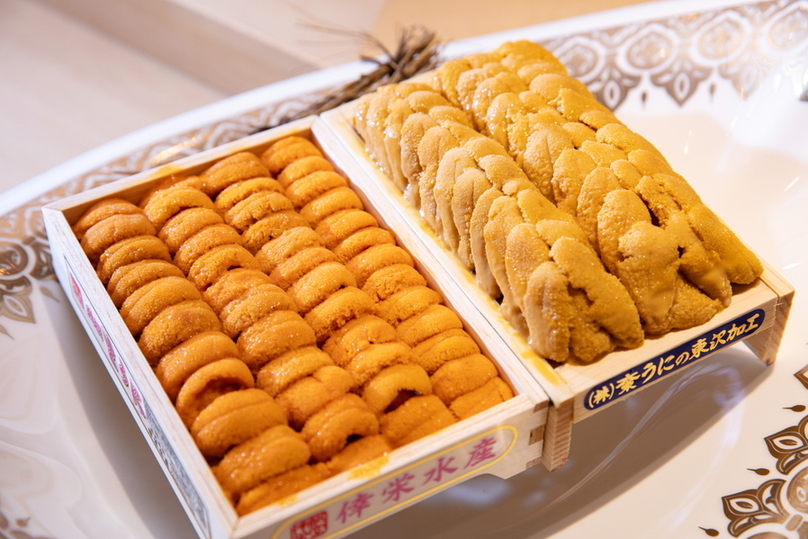 Luxurious pieces with Kuroge Wagyu beef and sea urchin can also be enjoyed, starting at the ¥10,000 range.