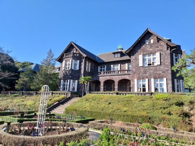 A spot with a beautiful combination of a Western-style mansion and gardens.