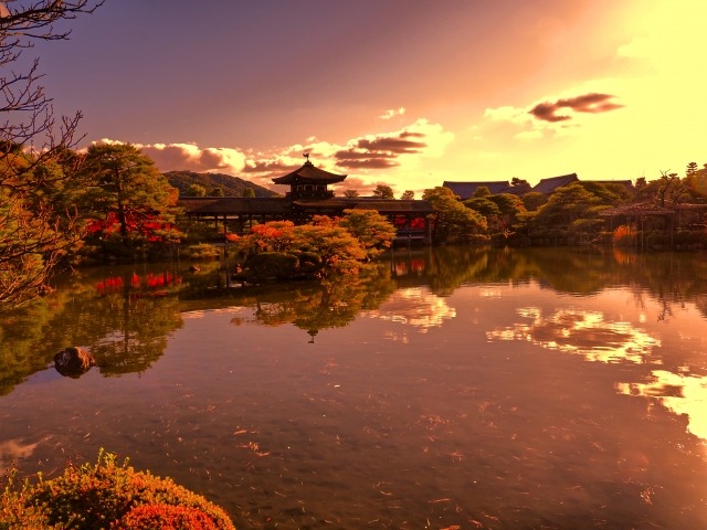 Known for its striking vermilion torii gate, Heian Shrine’s gardens and pond are beautifully framed by autumn leaves, offering visitors a peaceful and picturesque retreat.