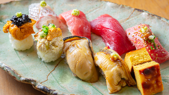 Enjoy Edomae sushi made with fresh seafood shipped directly from Tokyo and local fish from Kyoto, all prepared right in front of you. This luxurious lunch includes twelve carefully selected pieces of sushi and a variety of side dishes.