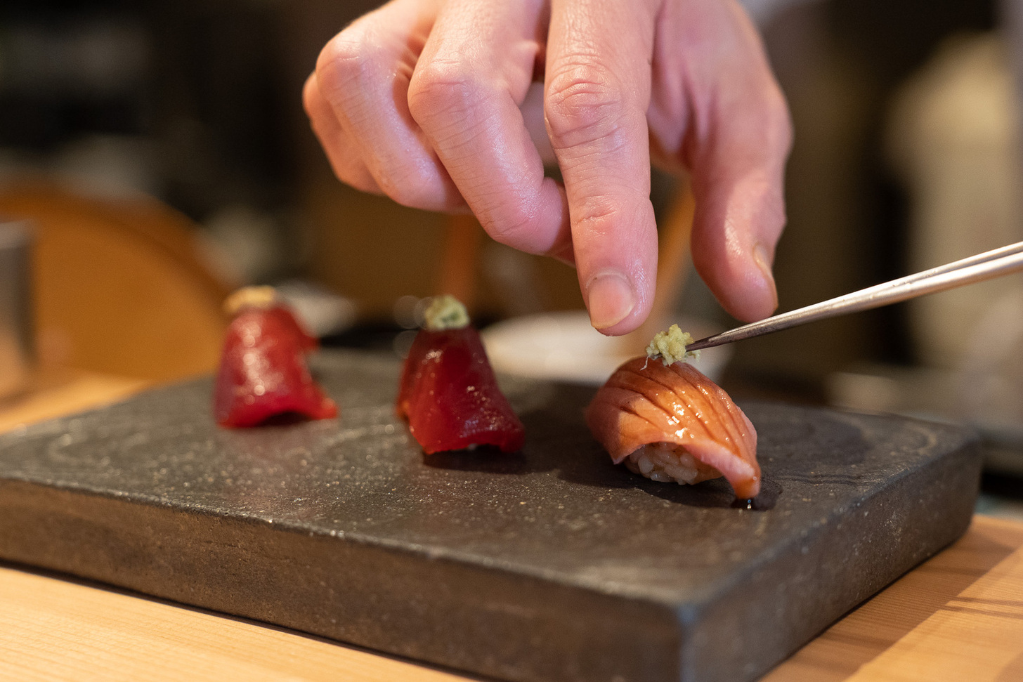 • The sushi rice is specially made with rich red vinegar, carefully adjusted for humidity and temperature.