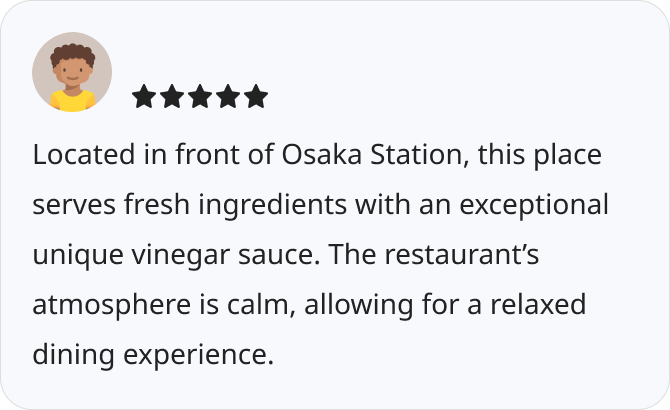 • Highly rated on Japan’s top gourmet websites.