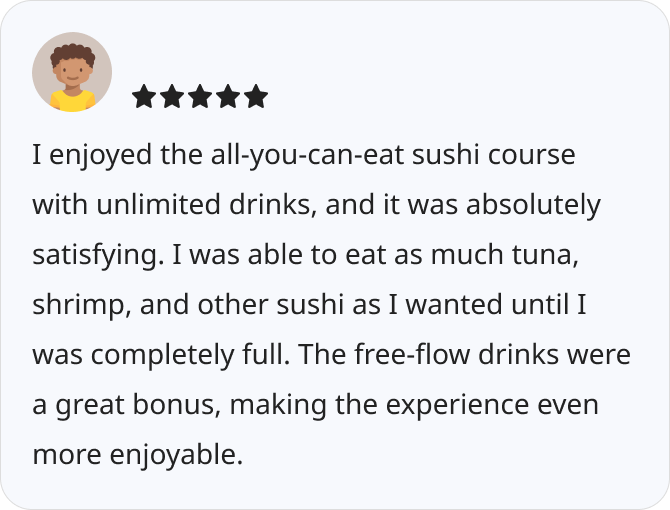 • Offers all-you-can-eat sushi and all-you-can-drink options.