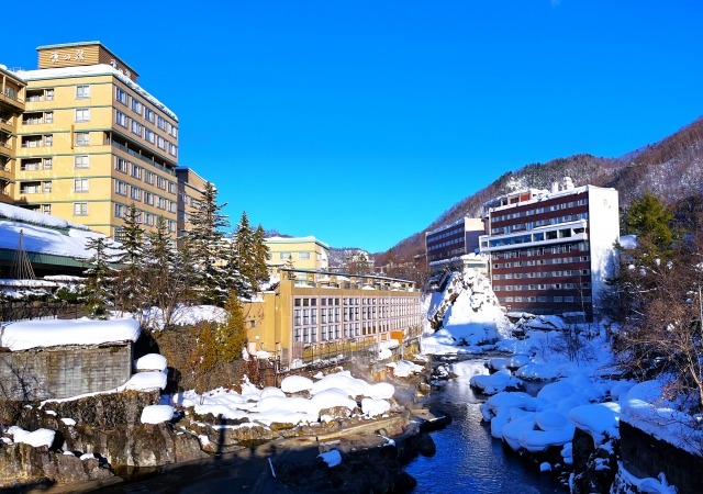 About one hour by car from central Sapporo. A healing spot where you can enjoy hot springs while viewing snowy scenery.