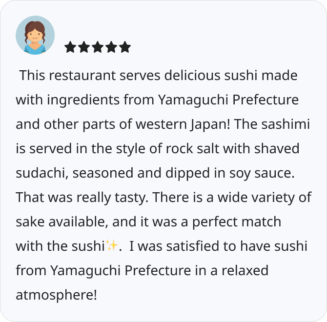 • Sushi using carefully selected ingredients directly from Shimonoseki.