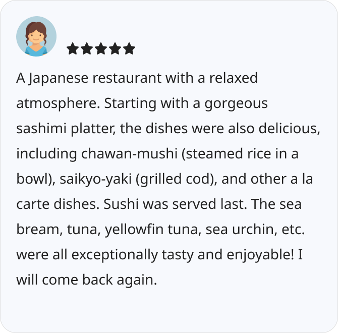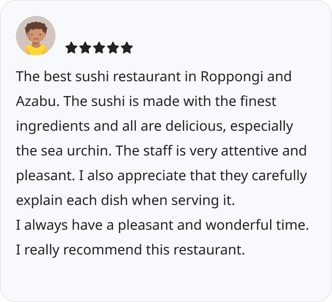 - A hidden gem where you can enjoy authentic Edomae sushi.