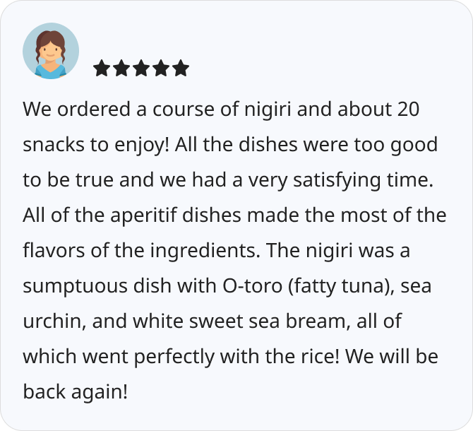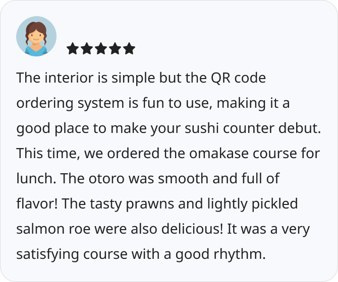 - Recommended for OMAKASE beginners! Reasonable 3 courses.