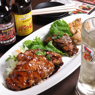 Yakitori set using Seiryu Wakadori chicken includes juicy chicken thigh, Yodarechicken, chicken skin, cartilage, Tsukune, liver, etc.All-you-can-drink for 2 hours with beer and highballs!
