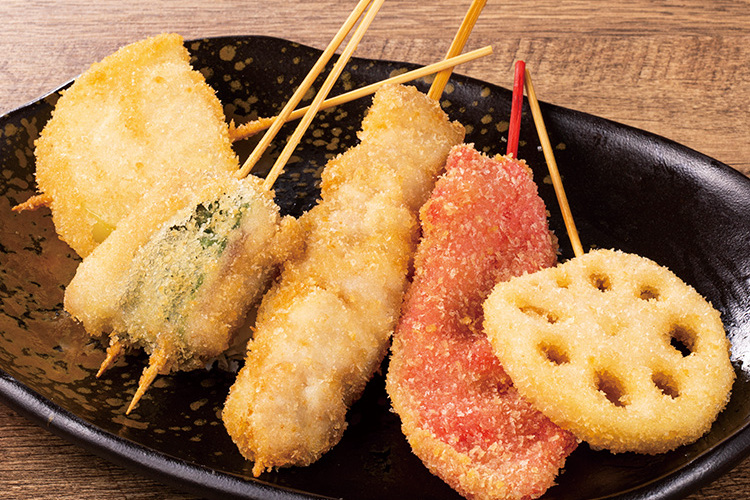 Fried Skewer Set is a variety set of skewers.The batter is a blend of soy milk and soybean flour for a light and crispy texture.
