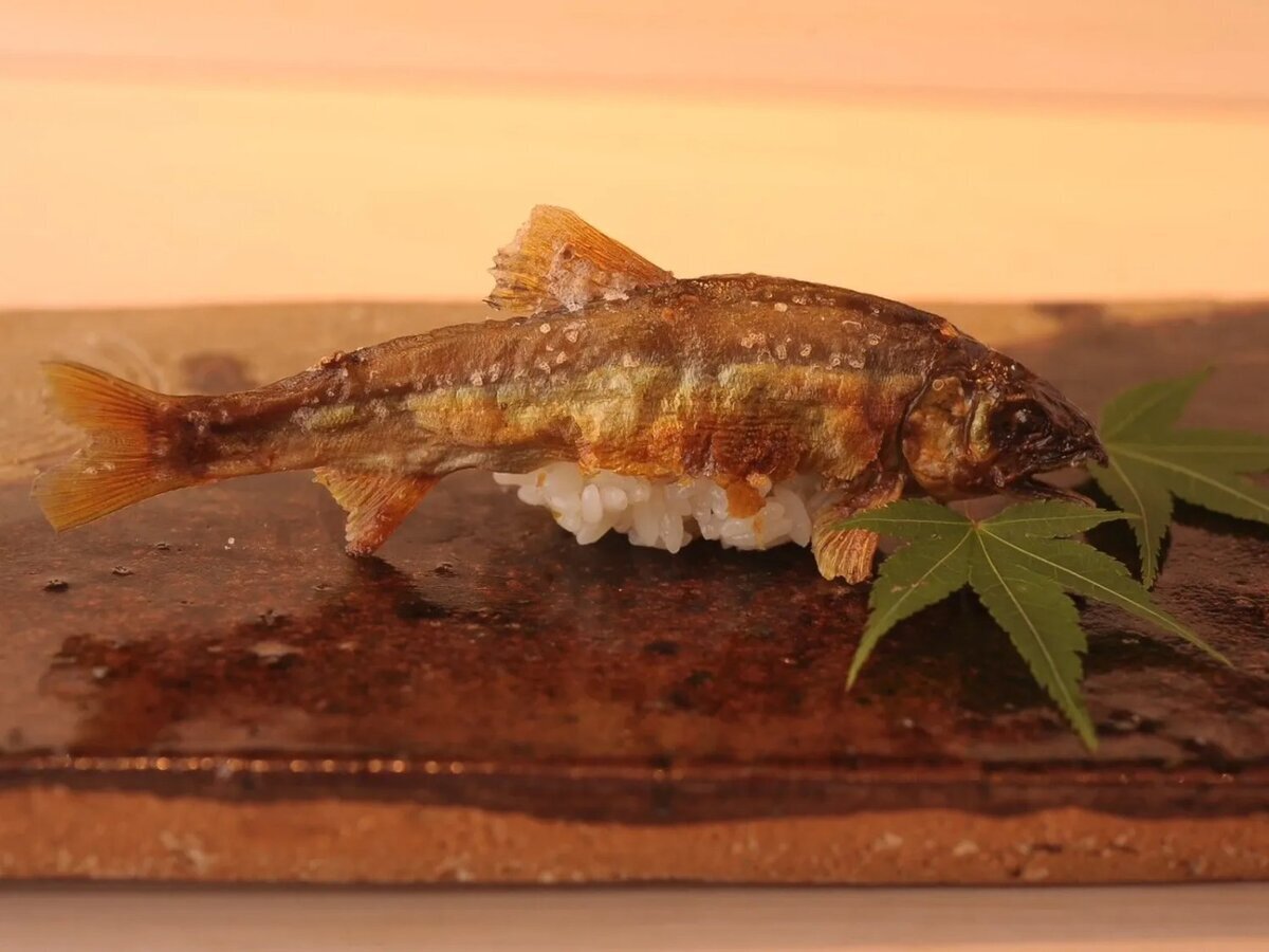 While mastering the basic sushi toppings, seasonal ingredients such as ayu smoked with bamboo shoots and pine needles infused with kinome leaves are inserted.
