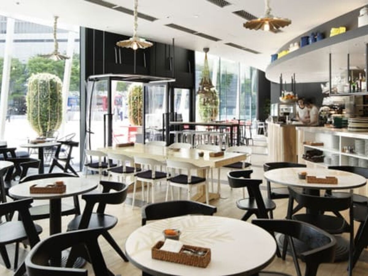 A modern and relaxing all-day dining with 130 seats, incorporating natural landscapes into its food and space. With a high ceiling of 3 meters and large glass windows overlooking the square, it offers an exceptional sense of openness and a fantastic view, making the cityscape at night a part of the interior.