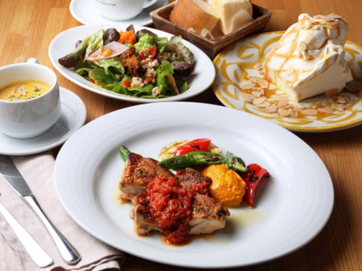 Waffles baked to order and a wide variety of desserts. Dishes made with seasonal ingredients carefully selected by the chef offer a taste of the seasons.