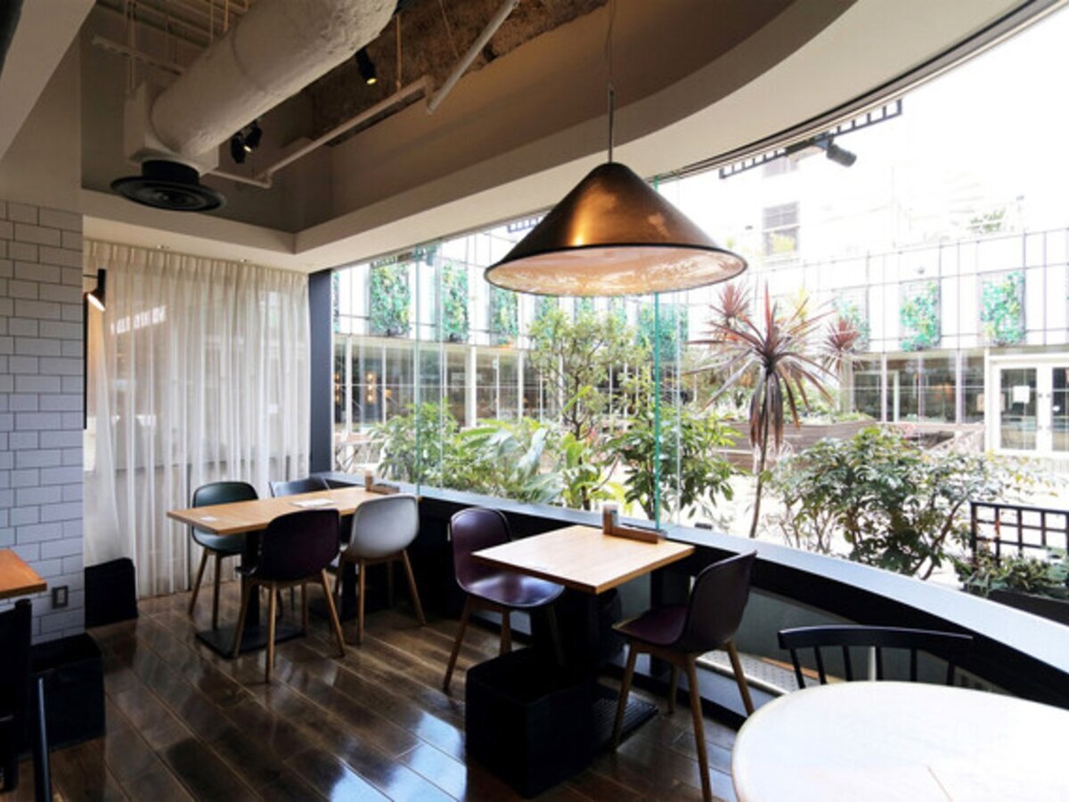 A total of 70 seats facing a large window overlooking the courtyard on the 8th floor of LUMINE Ikebukuro. The interior, surrounded by a spacious garden, offers a relaxing atmosphere.