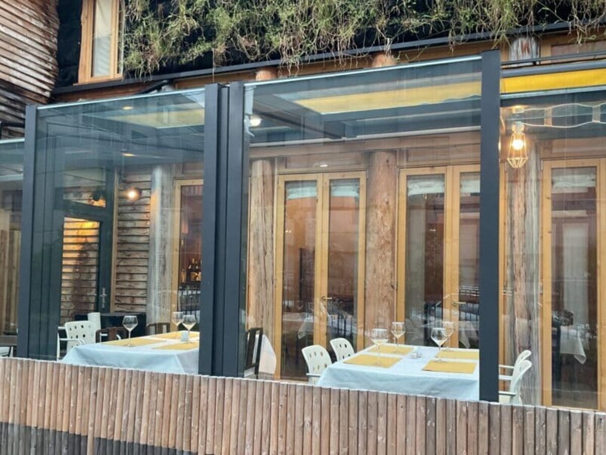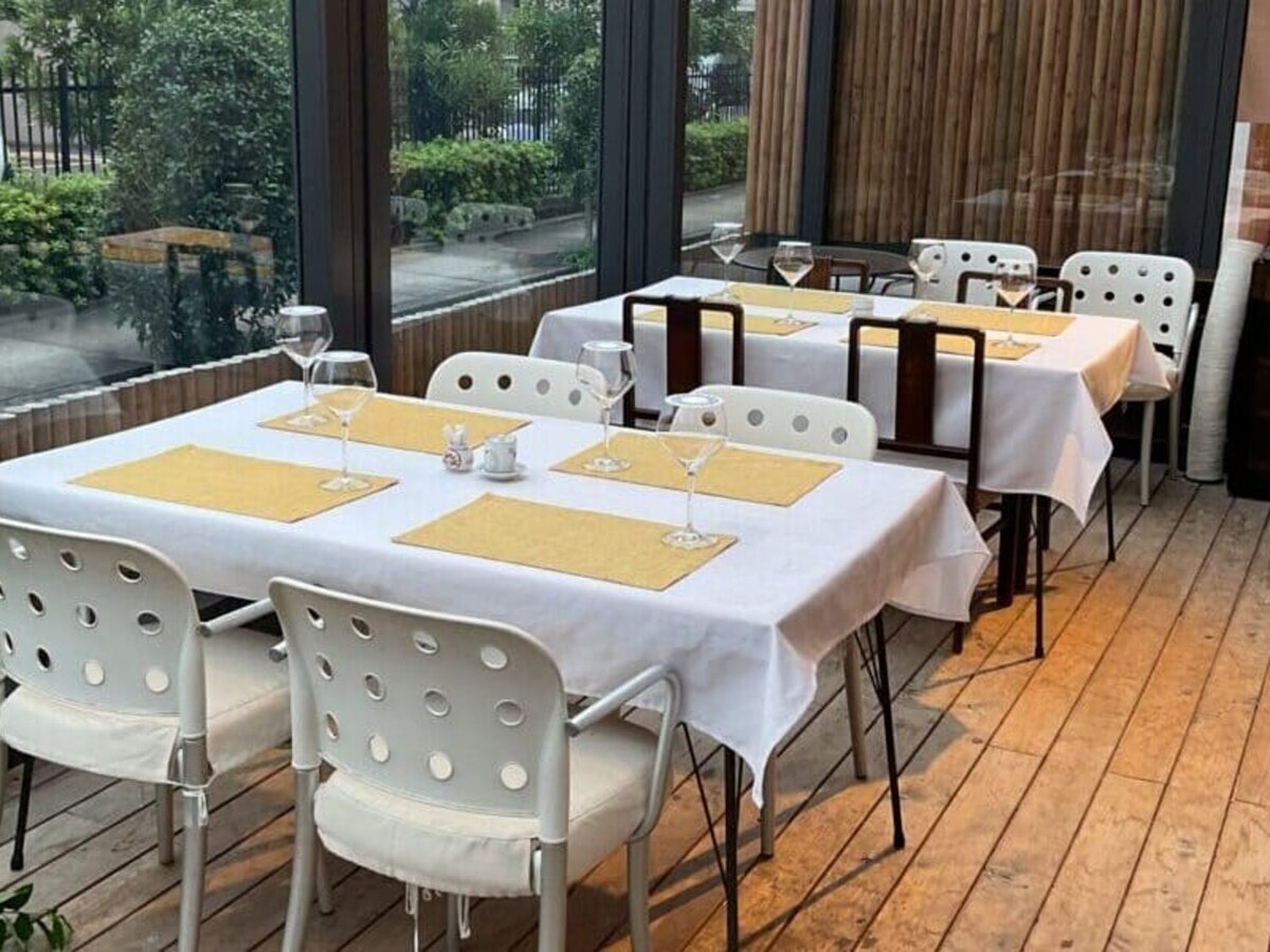The interior and exterior resemble a café, and there is also a terrace seating area.