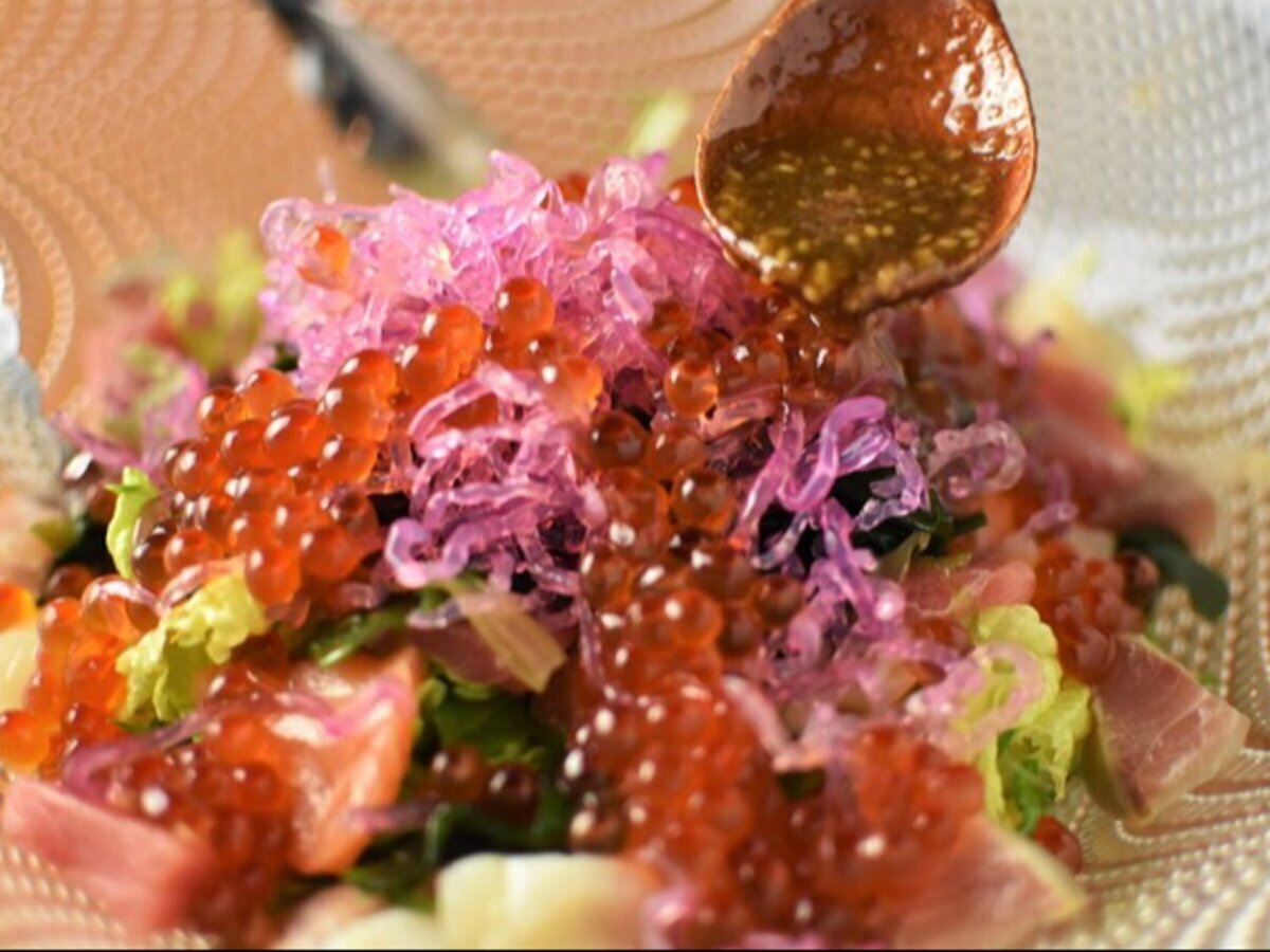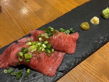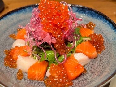 You can enjoy seared wagyu sushi and seafood salad packed with salmon roe and various seafood, paired with a wide selection of sake!