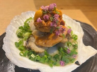 The luxurious grilled sea urchin and scallops in butter are renowned for their thick, meaty scallops and rich sea urchin, delivering deliciousness all the way to the last drop!