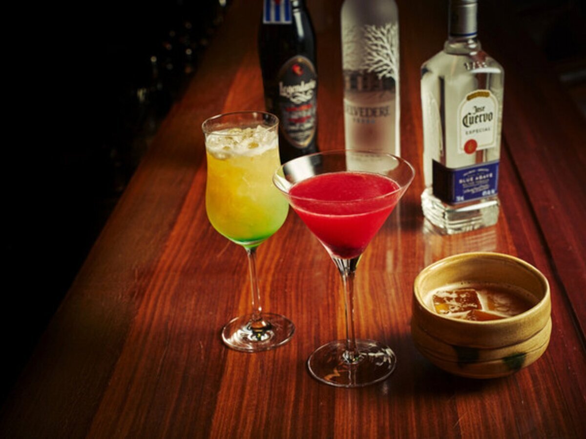 Colorful dishes and cocktails, along with a night view that sparkles like jewels.