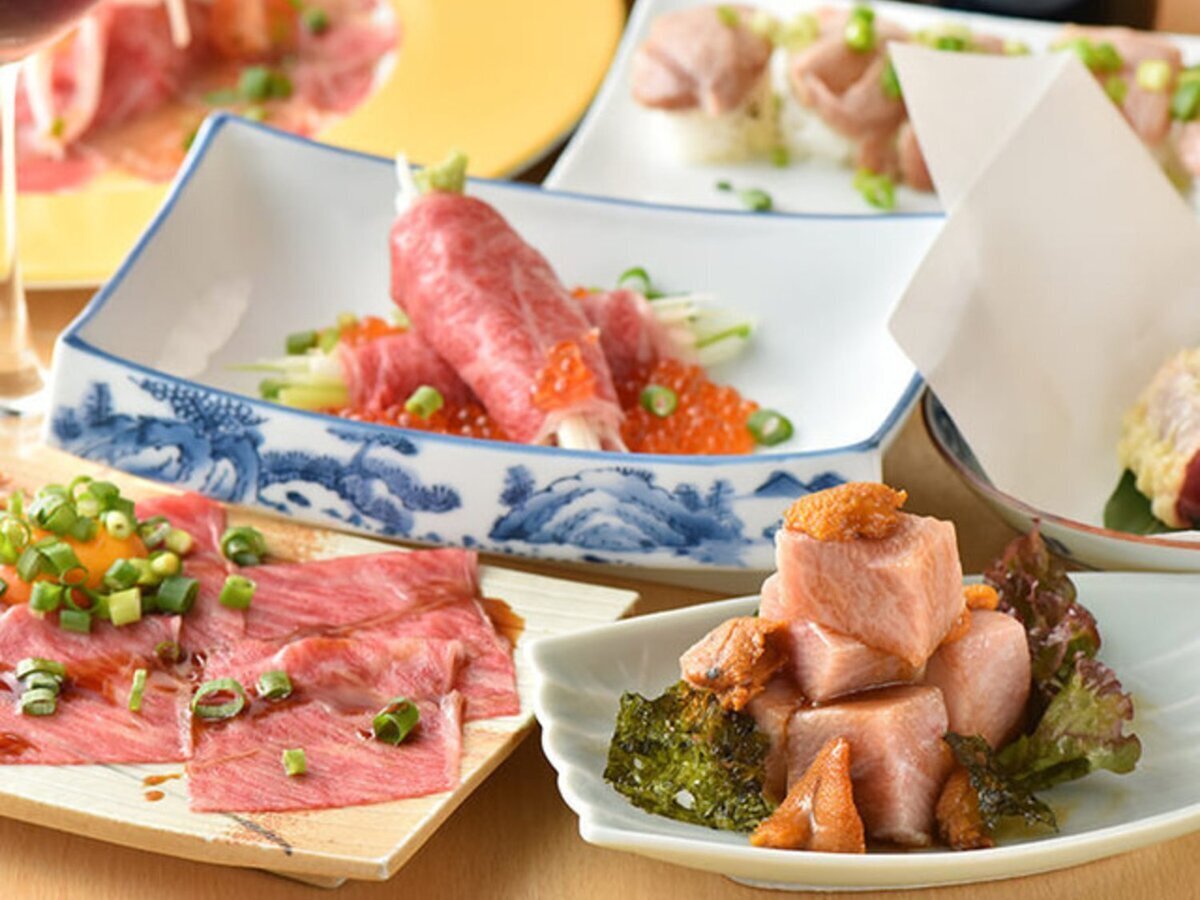 We offer exquisite dishes such as seared Kuroge Wagyu uni rolls and seared meat sushi.