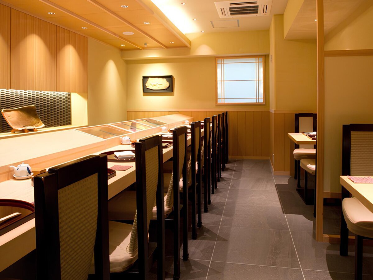 A hidden sushi restaurant situated in a quiet location that is unimaginable from the image of Akasaka.