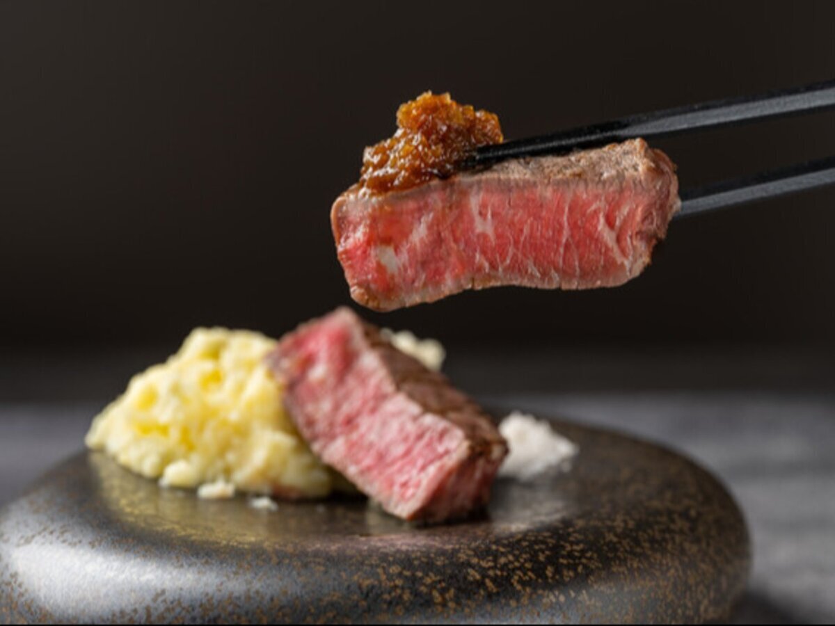 The only place in Osaka! At the specialty restaurant for the legendary wagyu "Tosa-Akaushi," enjoy a steak overflowing with the shocking umami of lean meat.