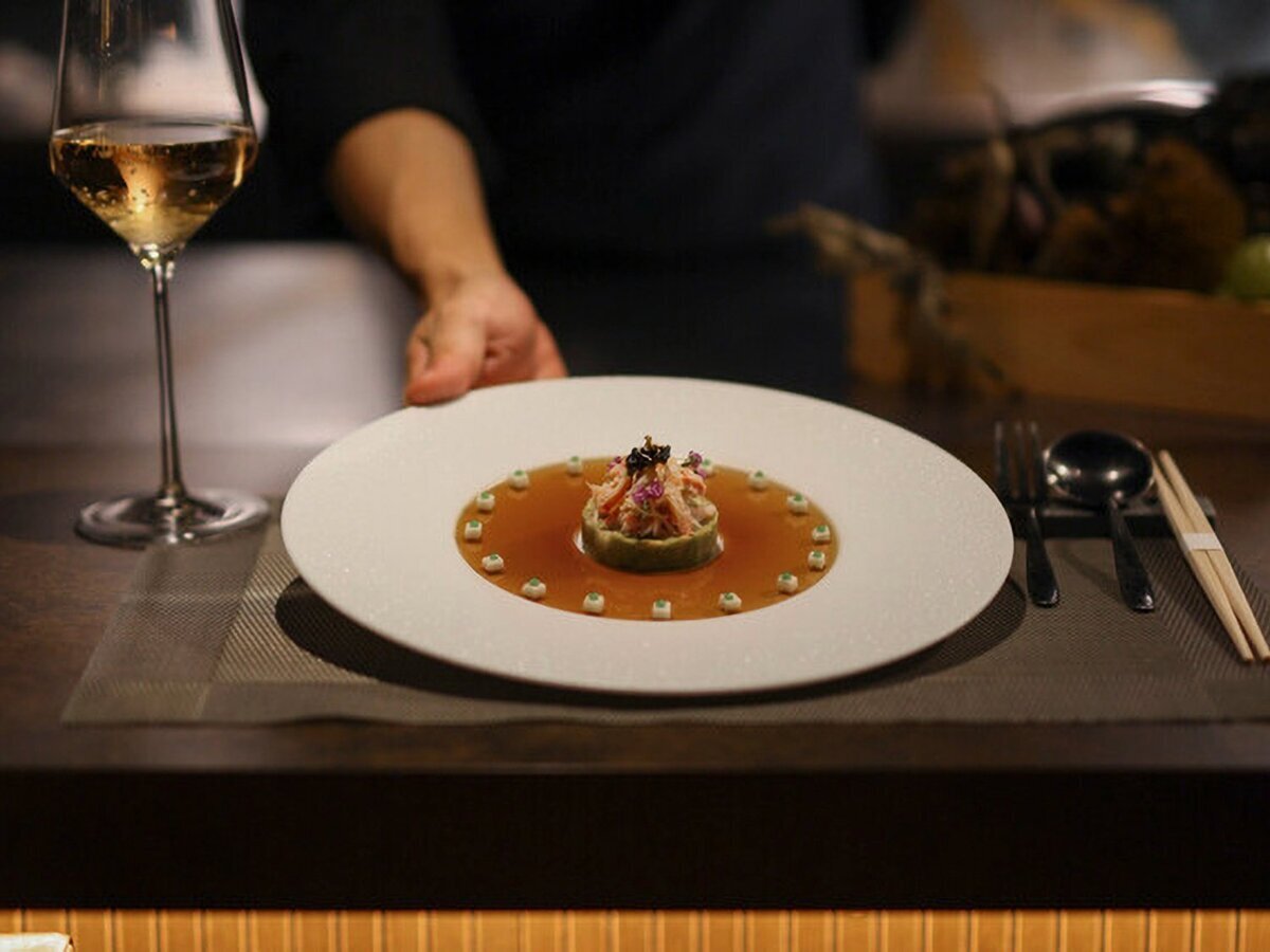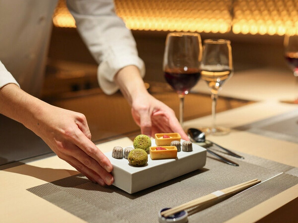 Furthermore, we focus on ingredients such as live shrimp, lobster, and fresh live abalone, all showcasing the chef's skill at the open counter in a luxurious setting.