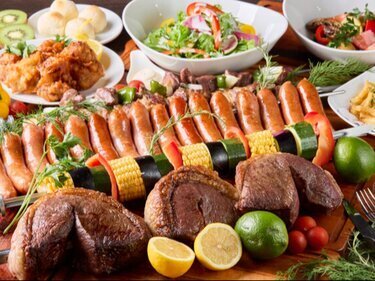 At one of the few churrasco restaurants in Kyoto, you can enjoy an all-you-can-eat salad bar along with unlimited drinks.