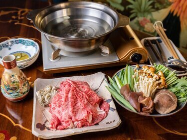 Luxuriously enjoy the finest sukiyaki cooked right before your eyes