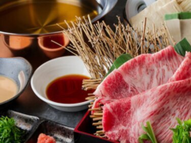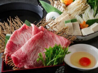 Carefully selected A5-grade black-haired wagyu beef sukiyaki and shabu-shabu also for lunch