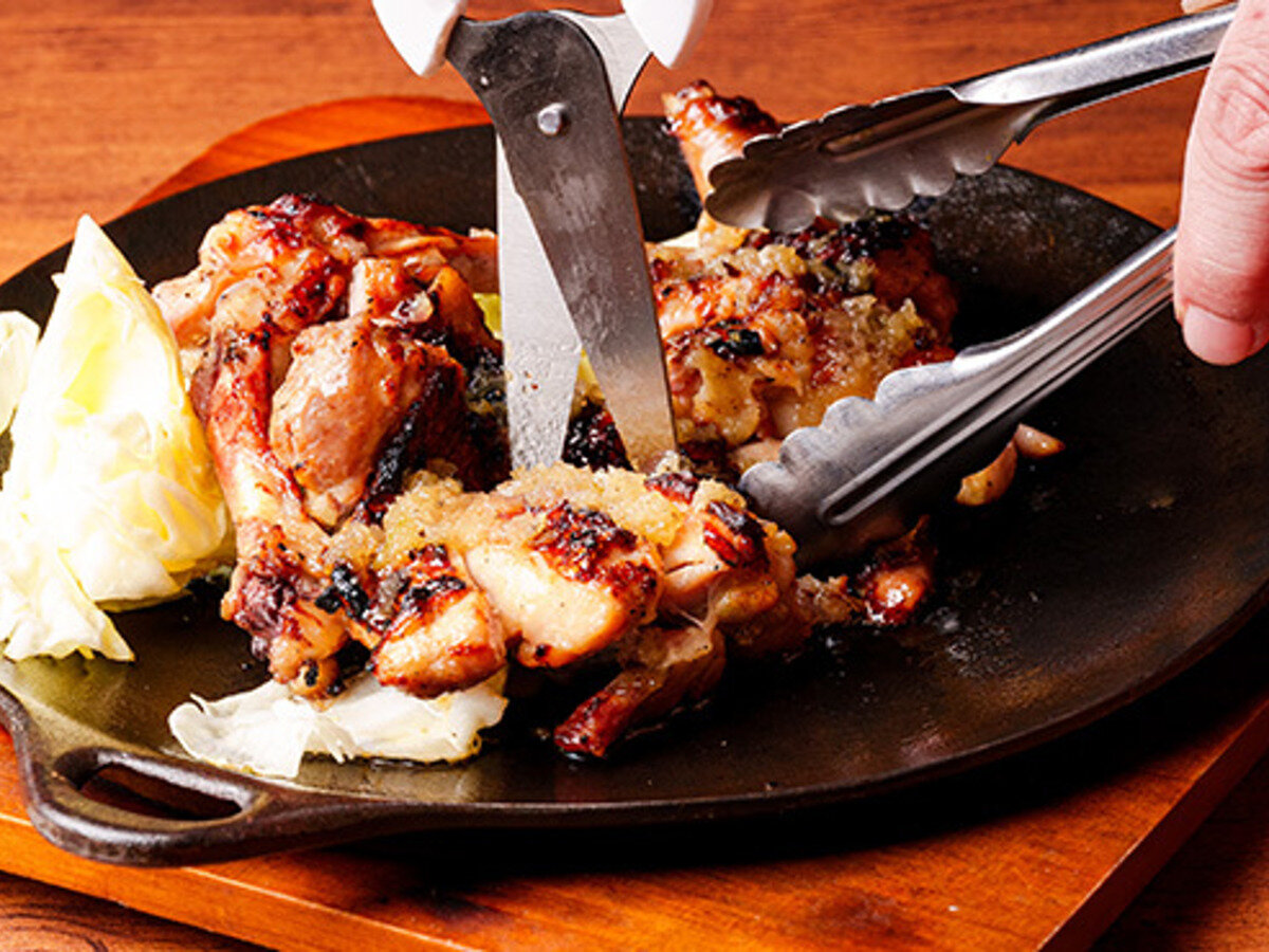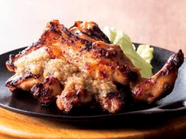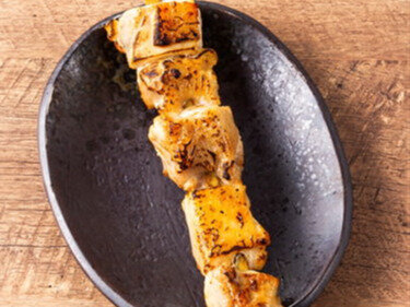 The collagen-rich sauce made by simmering the chicken crown and legs coats the yakitori well.