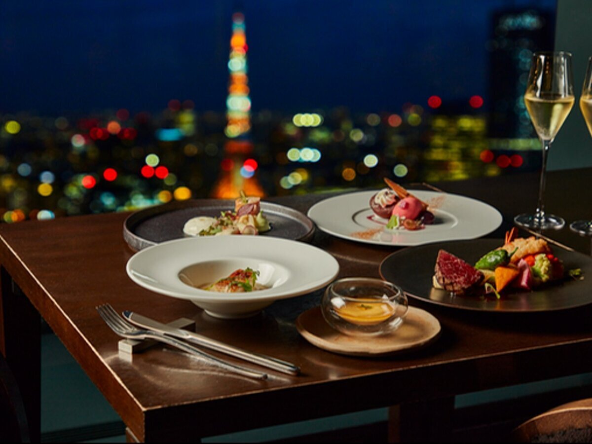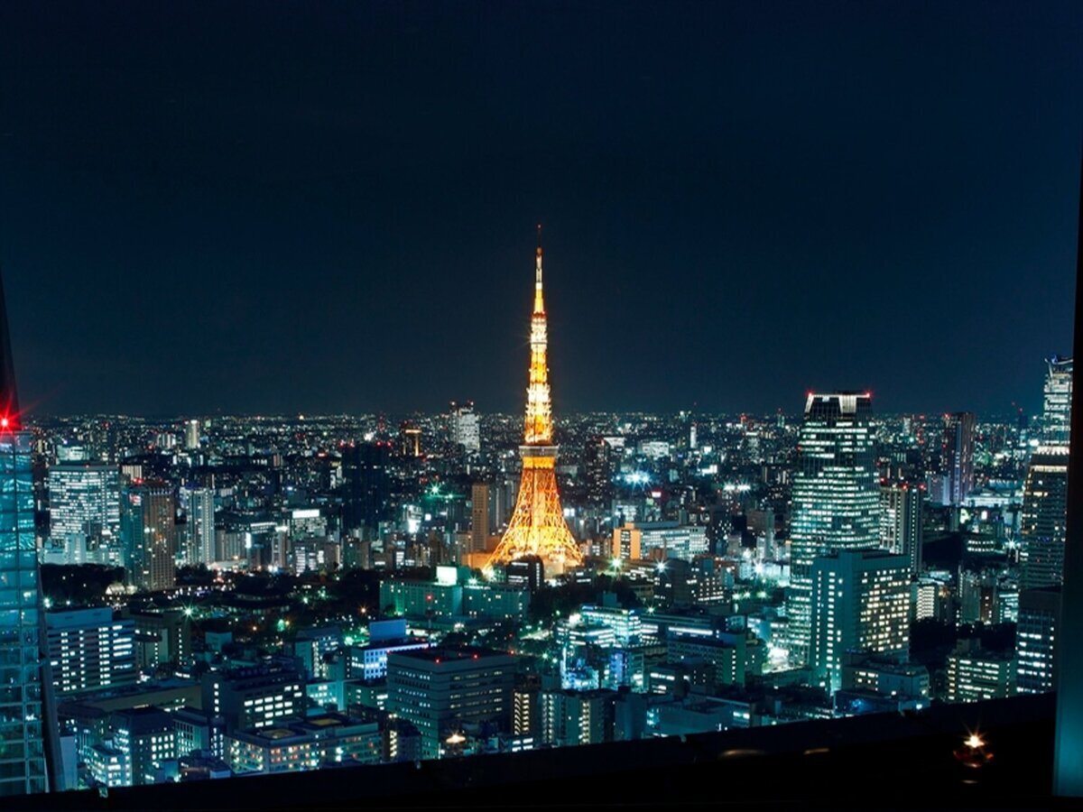 The night view of the city and Tokyo Tower fills the entire field of view.