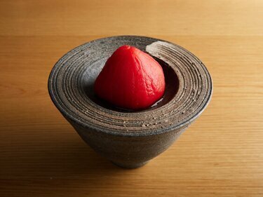 Sushi made with red vinegared sushi rice goes great with sake.