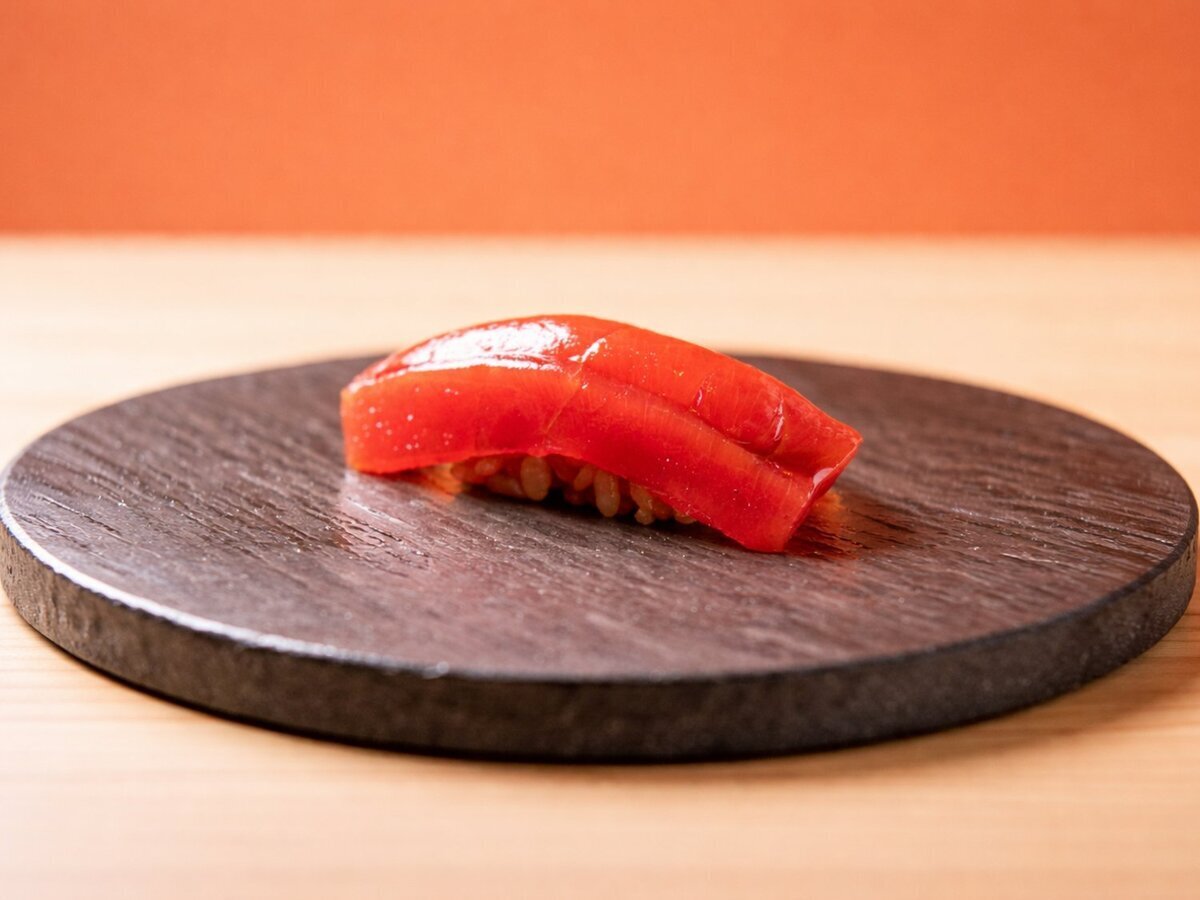 Sushi with "10-year-aged secret red vinegar" served a la carte with seasonal sake snacks.