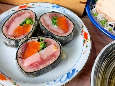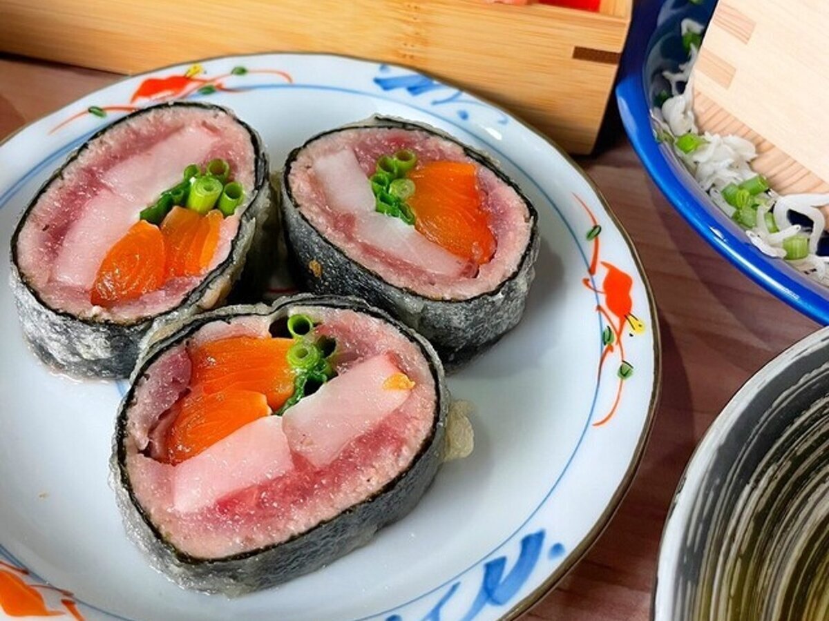 Our signature "Tempu-Maki" is made with three kinds of seafood that change daily, wrapped in seaweed and turned into tempura.