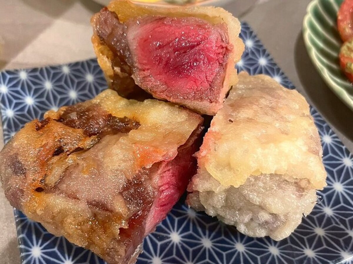 We also have tempura with salmon, tuna, and meat.