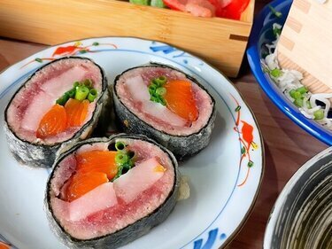Our specialty "Tempu-Maki" is a popular menu item featuring tempura wrapped in seaweed with three kinds of seafood that change daily.