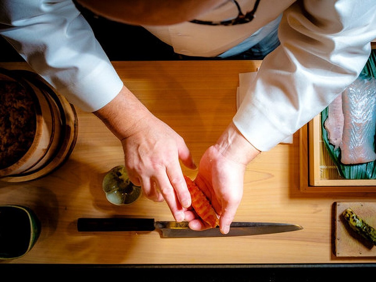 Located in a quiet residential area just a 12-minute walk from Shirokanedai Station, our restaurant is a hideaway where you can enjoy sushi in a Japanese-style space with only a Japanese cypress counter.