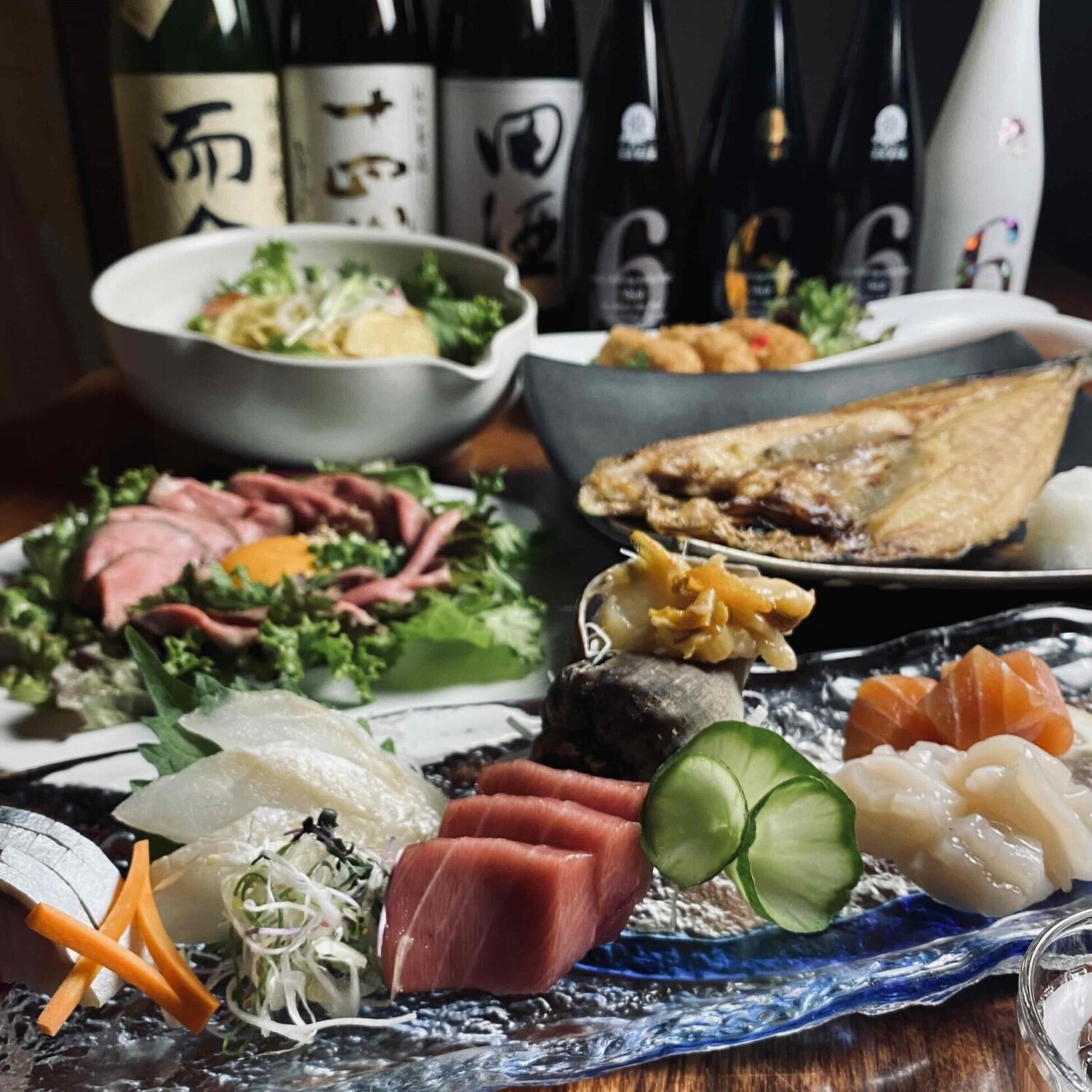 고급스러운 생선회부터 매력적인 구이, 튀김까지, 신선한 어개류는 이 이자카야의 신선도와 맛에 대한 타협 없는 자세를 증명한다.