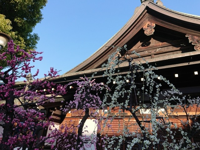 오사카시 기타구에 위치한 오사카 덴만구 신사는 현지에서 ‘덴진상’이라 불리며 스가와라 미치자네를 모시고 있습니다. 도묘지 덴만구 신사처럼 경내에 많은 우메 나무가 심어져 있어 이른 봄에는 붉은색과 흰색 꽃이 아름답게 피어납니다.