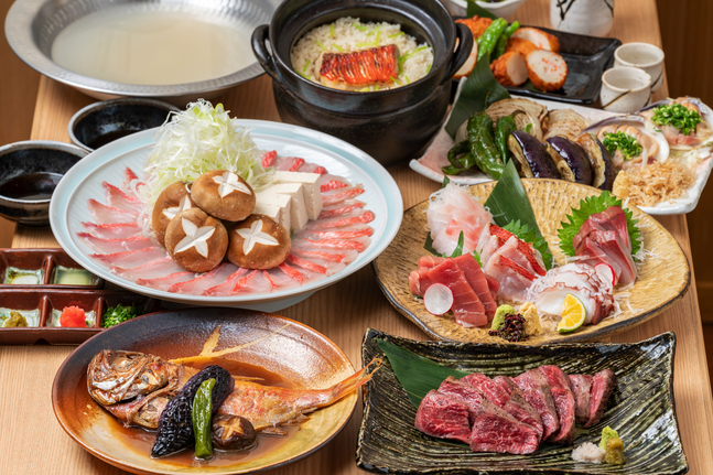 ‘響 新宿サザンタワー店 /Hibiki Shinjuku Southern Tower'의 메뉴는 고기, 생선, 채소를 맛깔스럽게 조리한 제철 연회 코스가 주를 이룬다.