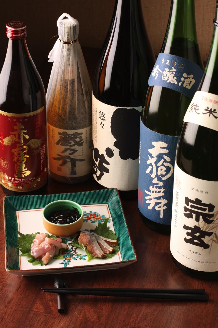 사케뿐만 아니라 소주, 매실주, 엄선된 와인도 다양하게 갖추었다.