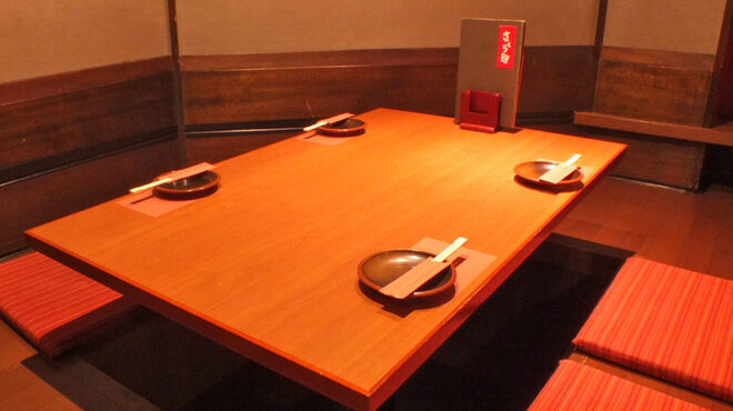 가게 안에는 호리고타쓰(마루청을 뚫음) 개인실이 있어, 프라이버시가 보장된 가운데 느긋하게 지낼 수 있는 공간이 마련되어 있다.