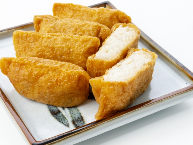 채소 등의 재료가 들어간 이나리 스시도 있습니다.