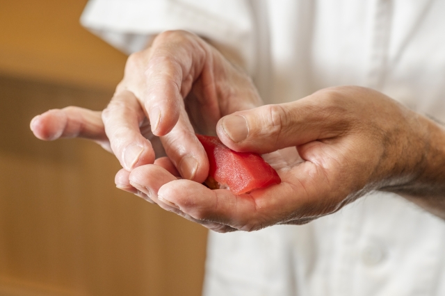 스시 장인의 숙련된 기술과 예술성이 요구됩니다.