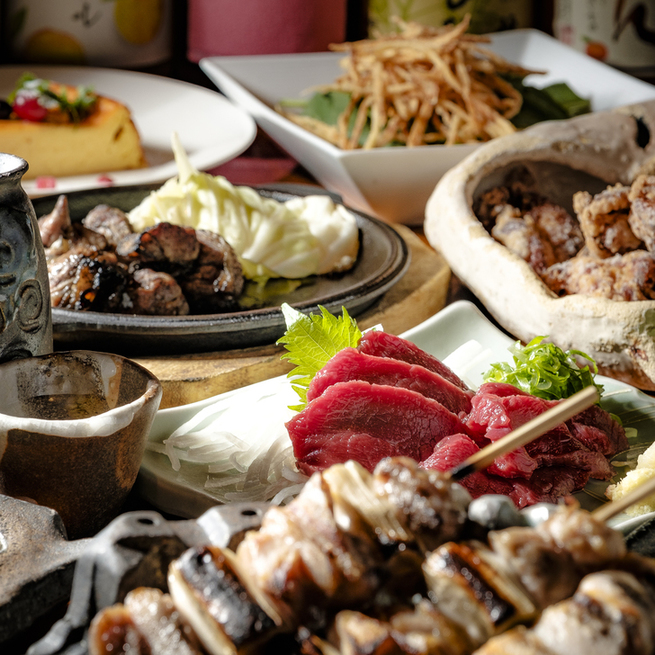 가라아게 그랑프리에서 금상을 수상한 ‘데카(엄청나게 큰) 닭튀김'과 매콤달콤한 양념이 맛있는 '비법 닭껍질 꼬치구이' 등 다른 곳에서는 맛볼 수 없는 개성적인 메뉴가 있습니다.