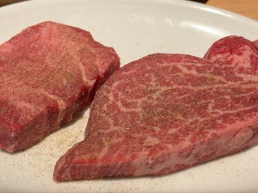 저희 가게에서는 살코기가 확실히 있는 흑모 와규를 부위별로 엄선합니다.