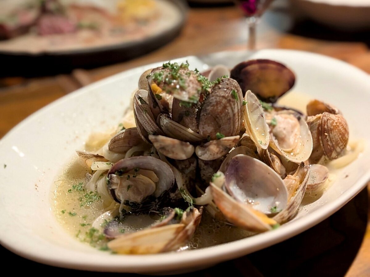 페스타 명물【바지락 집기】여성은 양손! 남성은 한 손! 잡은 만큼 파스타나 버터구이, 와인찜! 분위기는 최고조가 될 것