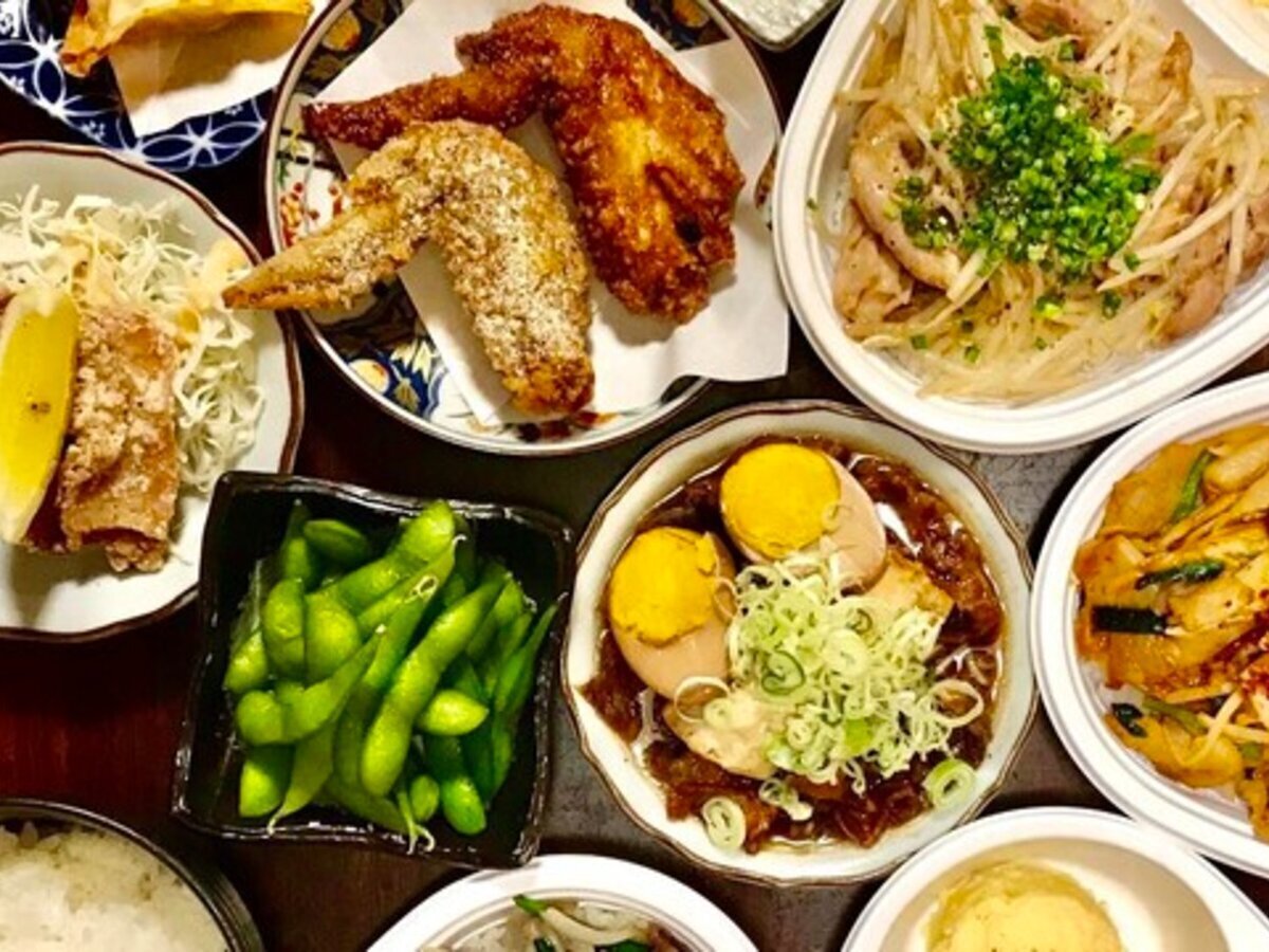 육즙이 넘치는 '닭날개 튀김'과 규슈 간장으로 조린 '소 곱창 조림'