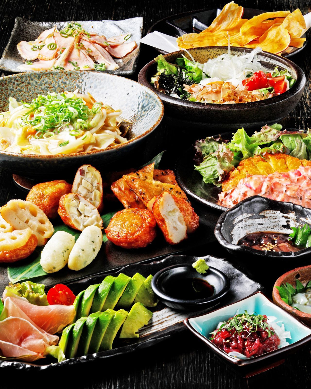 鹿儿岛名物萨摩油炸鱼肉饼、鹿儿岛腌物、苦瓜杂炒、角煮(红烧肉)等九州料理应有尽有。
