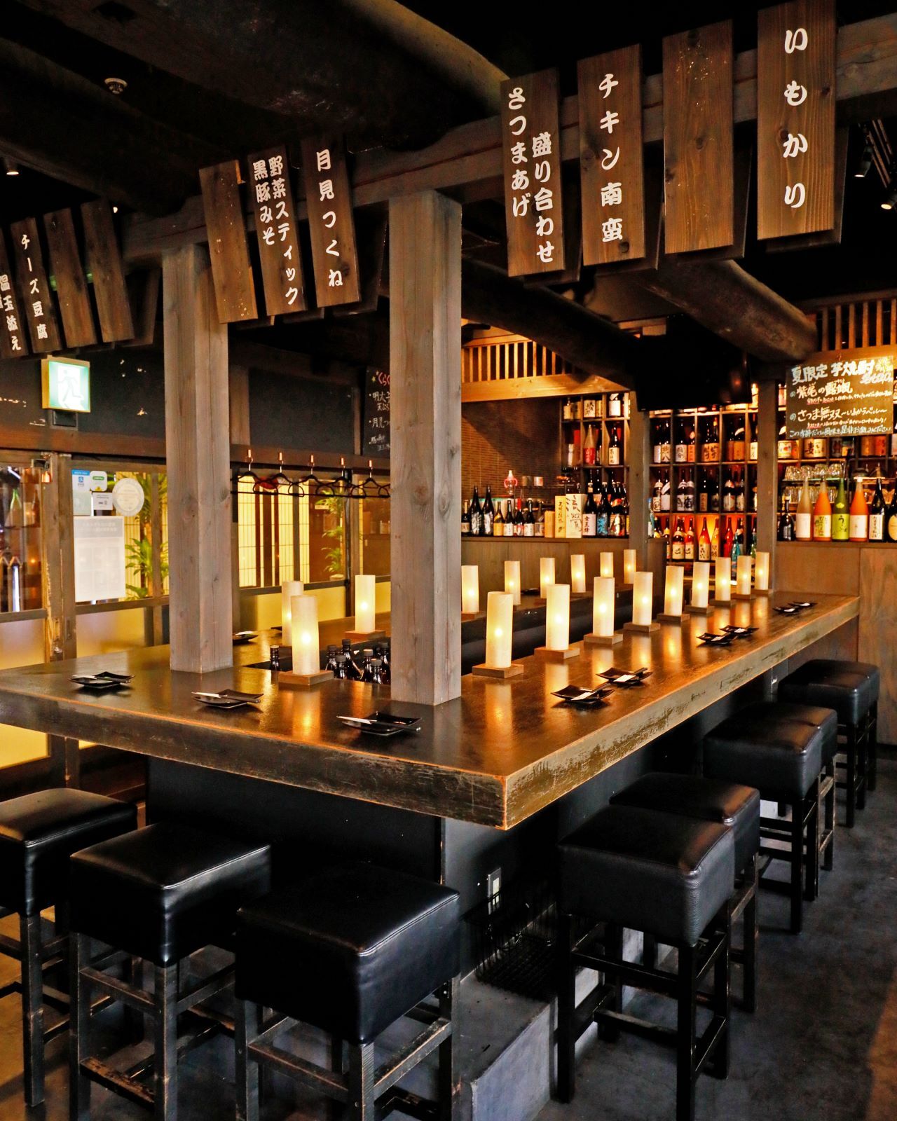 温暖烛光和轻松音乐的氛围下,这是在大阪放松身心的完美居酒屋。