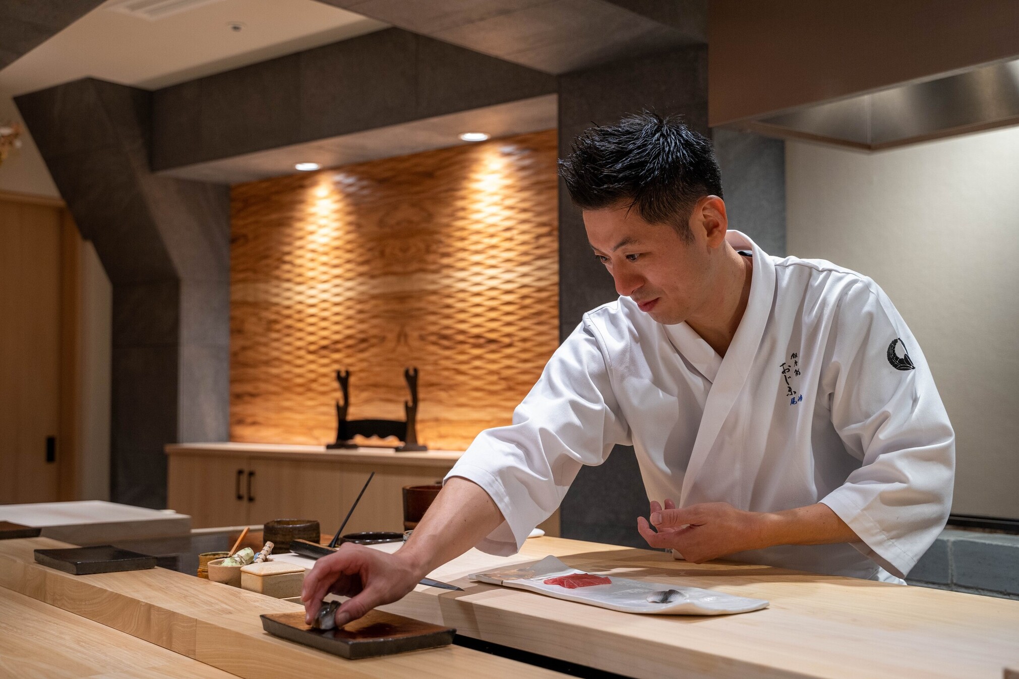 “OMAKASE”是一种将所有选择交由厨师决定的用餐方式,顾客可以一贯一贯地享用使用时令食材制作的寿司。